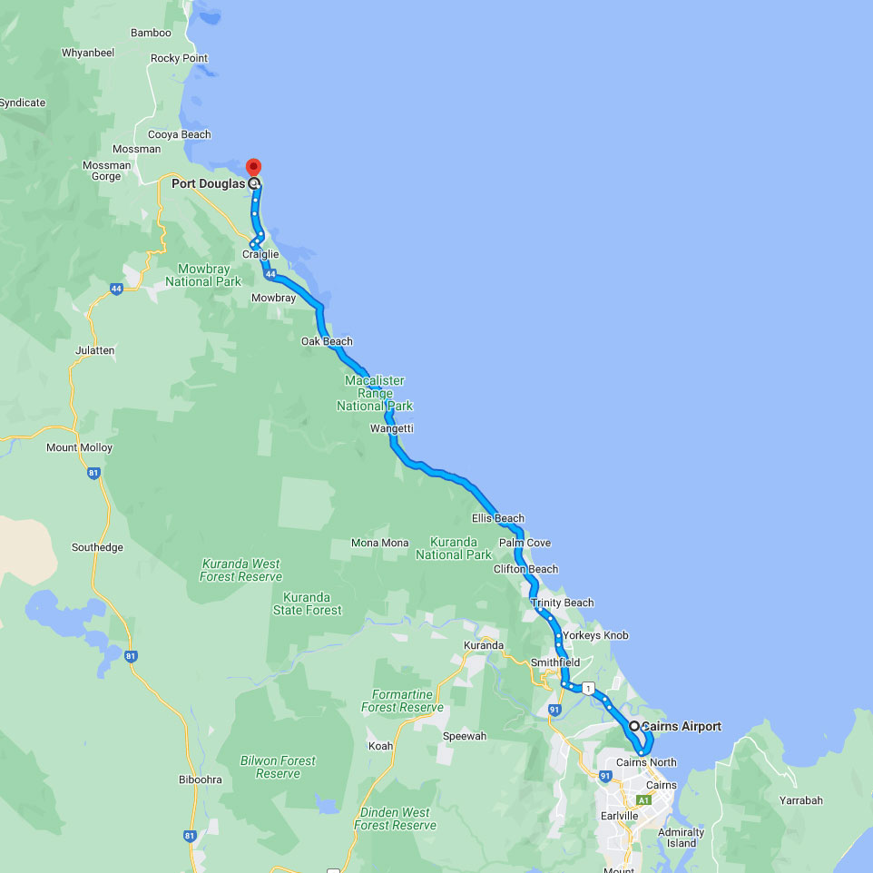 Port Douglas Limousine offers a dedicated private transfer service between Cairns Airport, Cairns City, Palm Cove, and Port Douglas.